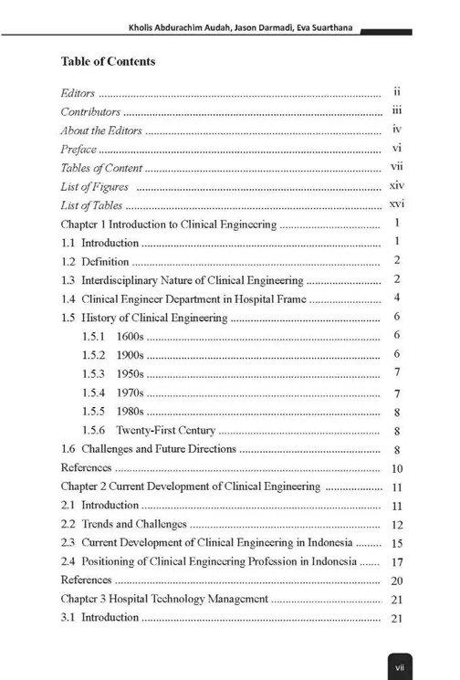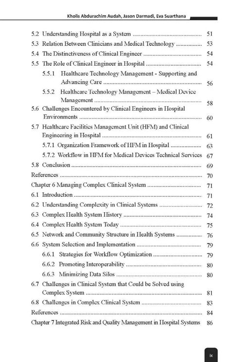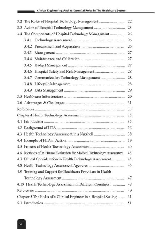 This book entitled “Clinical Engineering and Its Essential Roles in the Healthcare System” aims to provide students, clinical engineers, and other healthcare professionals with a reference to fully understand the basic principles and practices of clinical engineering in a hospital setting as well as infrastructure and supporting elements surrounding the healthcare ecosystem.