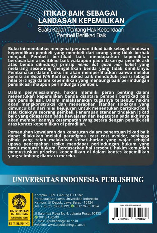 Itikad Baik Sebagai Landasan Kepemilikan Suatu Kajian Tentang Hak Kebendaan Pembeli Beritikad Baik