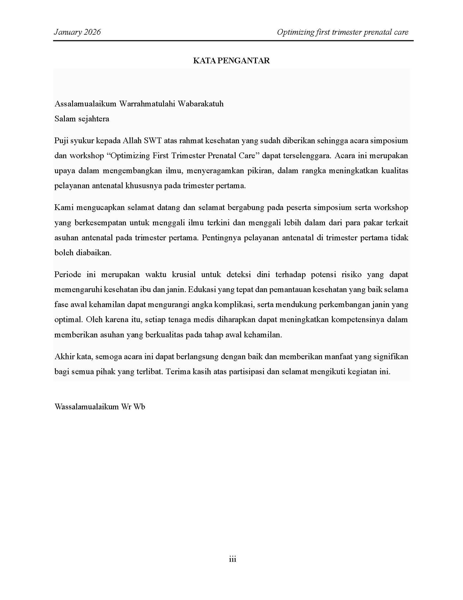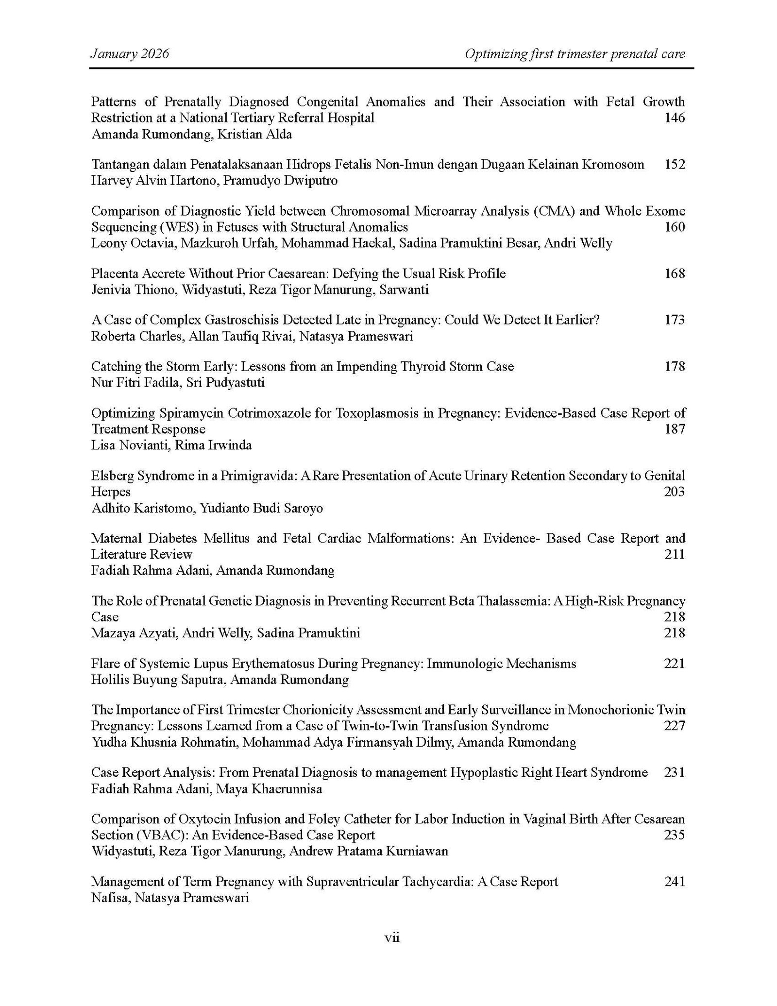 Proceeding Book: Prenatal Care 2026, Optimizing First Trimester Prenatal Care